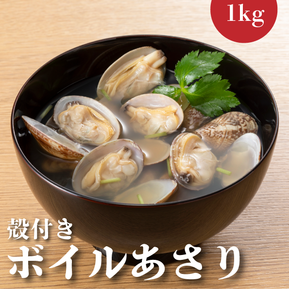殻付きボイルアサリ(51/60)が、たっぷり1kgで登場!白ワインを使った酒蒸しや、あさりの旨味たっぷりのお吸い物に最適。パスタ料理など様々なシーンでご活用いただけます。