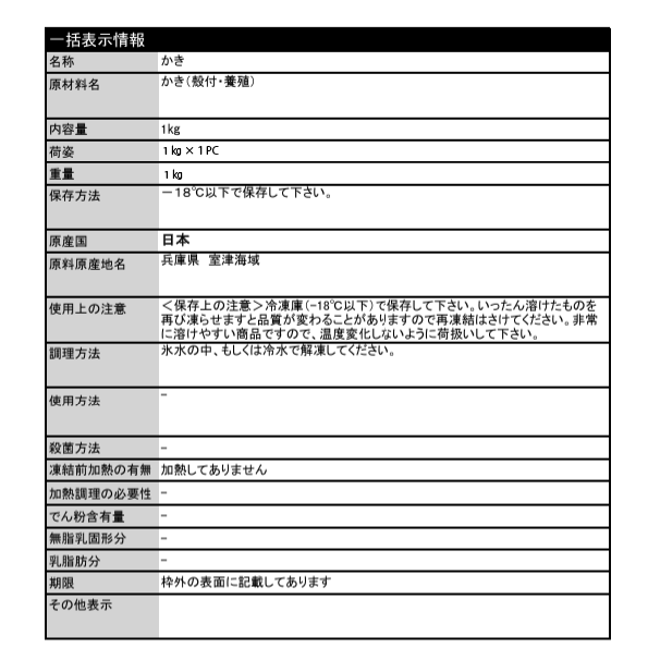 | 原材料名 | マガキ(兵庫県室津海域) |