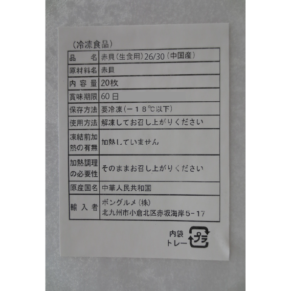 | 原材料名 | 赤貝 |