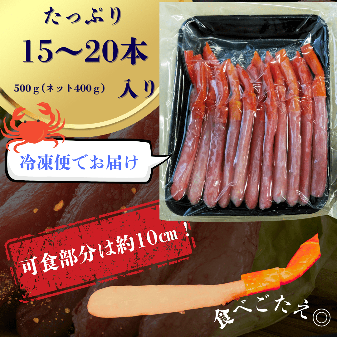 北海道産生紅ズワイガニむき身(生食用) 500g(ネット400g) 15~20本 ポーション